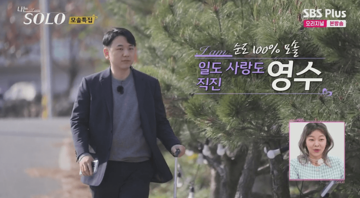 | 영수 | 첫인상 선택은 영자입니다. 선택한 이유는 등장 떄부터 발랄하고, 사진 찍어줄 때 즐기는 모습과 기본적으로 밝아보여 좋았다고 합니다. 또한, 자신과 달리 활동적인 영자의 모습이 보기 좋아 선택했다고 합니다. |
