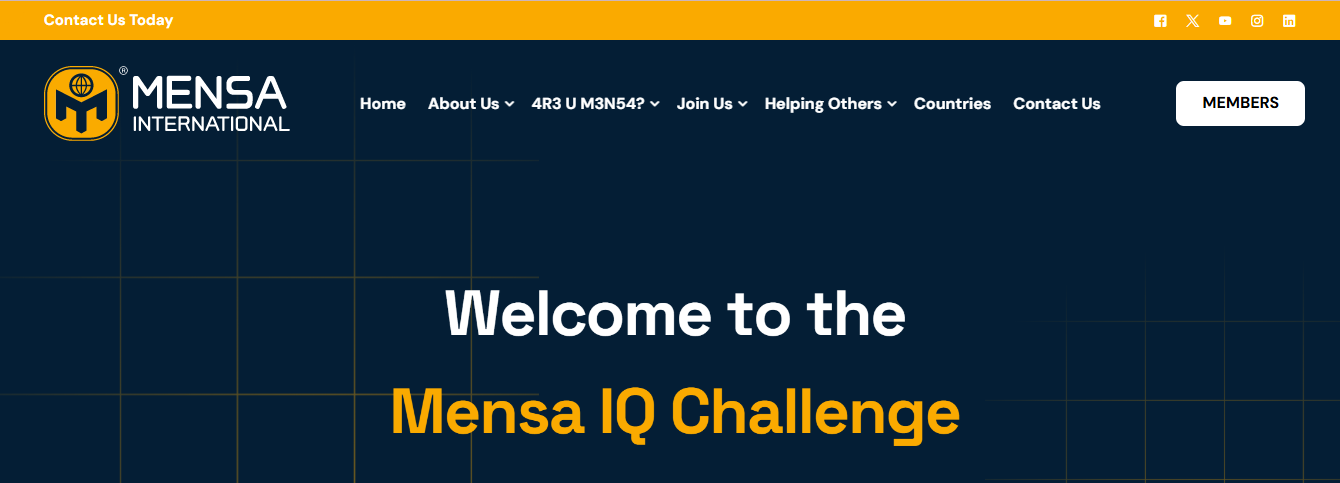 멘사(Mensa)는 세계적으로 유명한 지능 테스트 협회로, 이들의 아이큐 테스트는 전 세계에서 신뢰받고 있습니다. 멘사의 무료 온라인 테스트는 공식 테스트를 받기 전 연습해 볼 수 있는 형식이며, 결과는 멘사의 회원 자격을 신청할 때 참고될 수 있습니다.