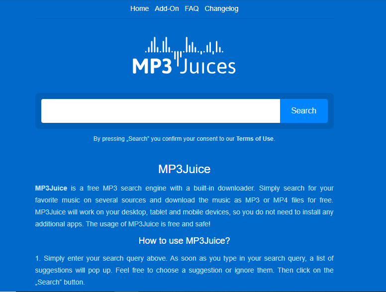 - 웹 브라우저에서 MP3 Juices 사이트로 이동합니다.
