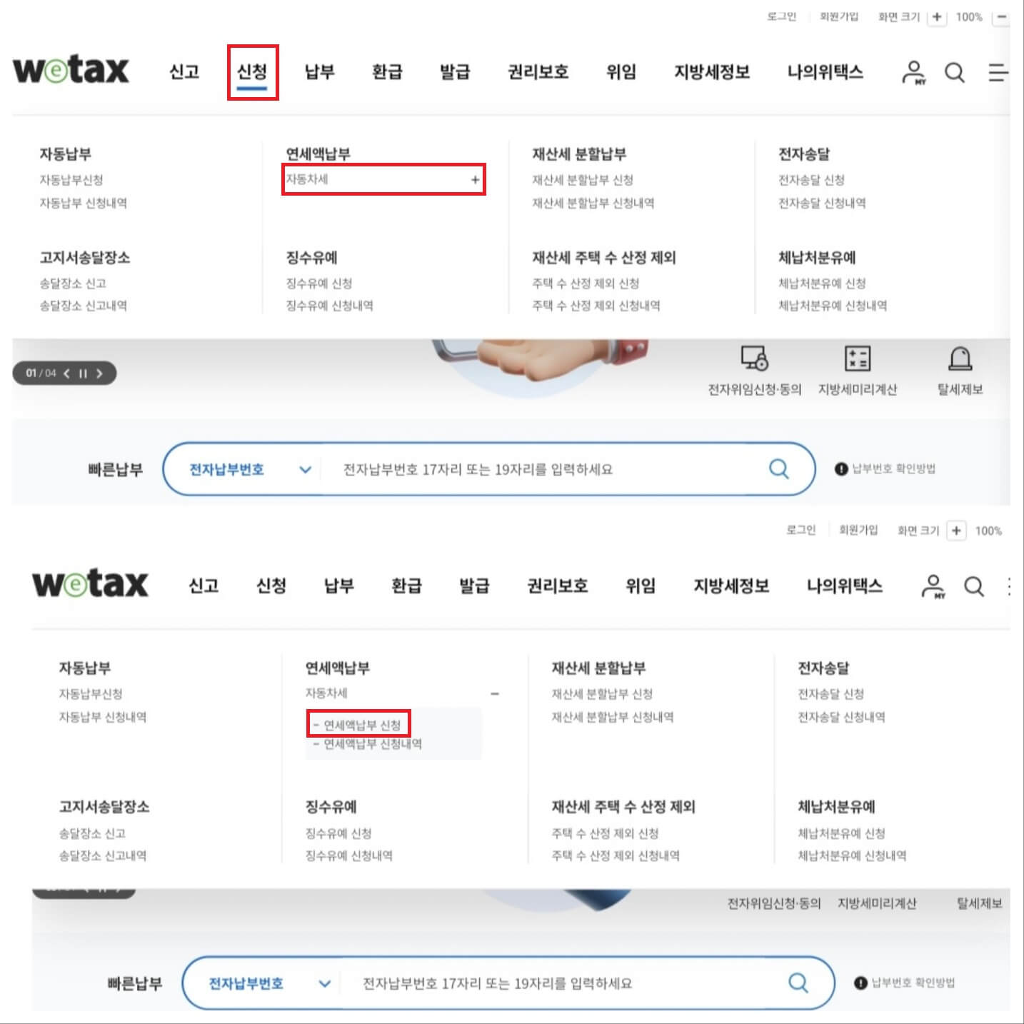 자동차 연납 신청은 온라인 신청 또는 전화(ARS)로 신청할 수 있습니다.