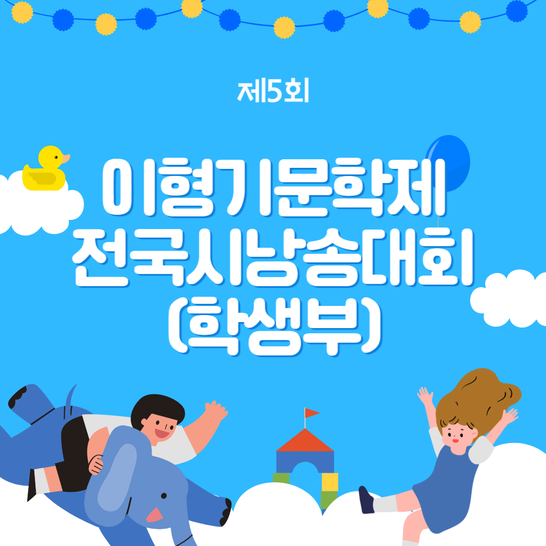 이형기시인기념사업회에서 제5회 이형기문학제 시낭송대회(학생부)를 개최하였습니다. 대상은 상장 및 문화상품권 11만 원을 수여합니다. 내용 잘 참고하셔서 꼭 상금 받아가시길 바랍니다.