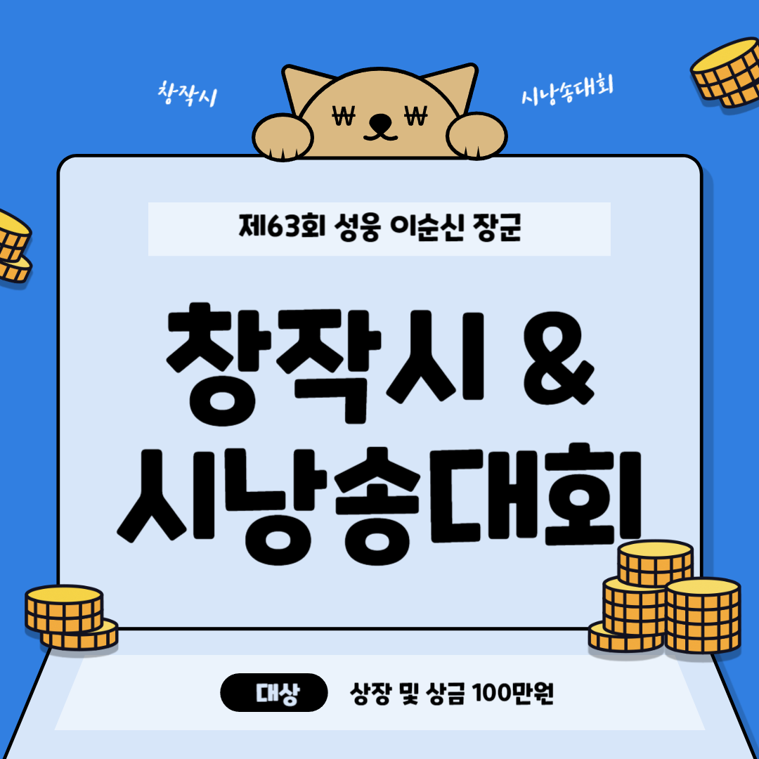 2024년 충남 아산시 아산문화재단에서 이순신 장군과 관련된 창작시와 시낭송대회를 개최하였습니다. 대상은 100만 원을 받을 수 있으니 접수 방법을 꼼꼼히 살펴보시고 참여하셔서 꼭 대상 받으시기 바랍니다.