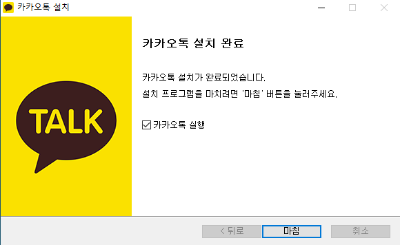 8. '마침'을 누르시면 카카오톡 실행이 되어 로그인하여 사용하시면 됩니다.