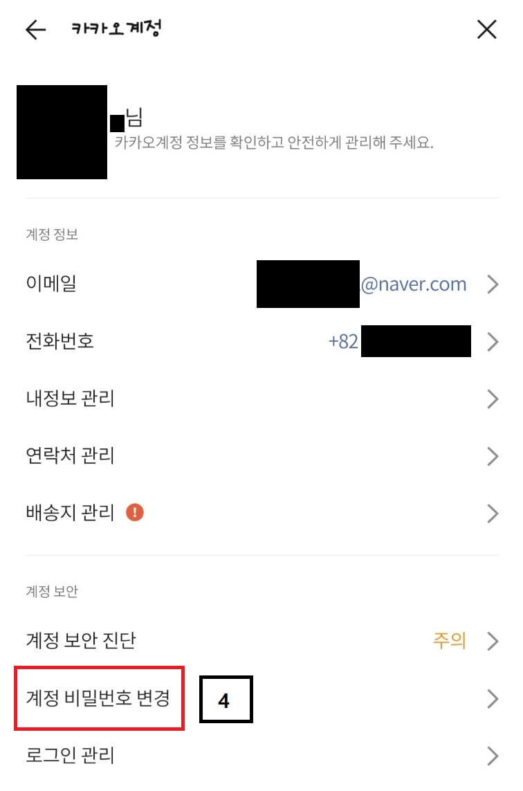 3. '계정 비밀번호 변경'을 누릅니다.