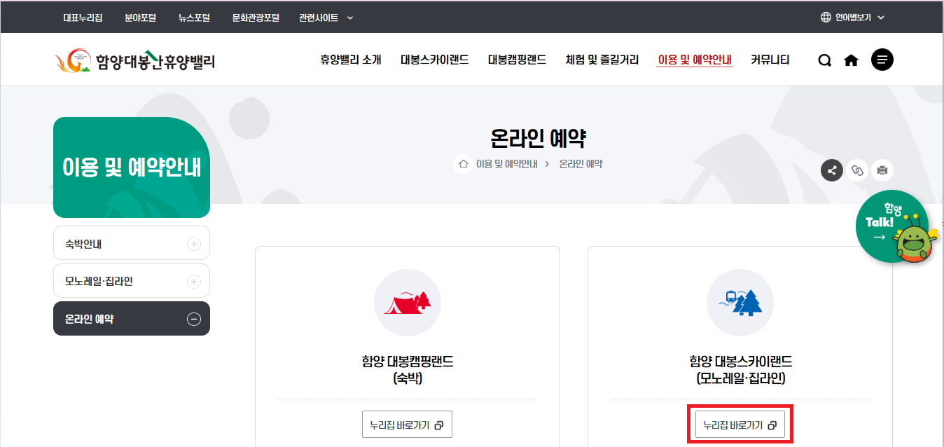 - 포털 사이트에서 "함양 대봉산 모노레일"을 검색하거나, 함양 대봉산 모노레일 공식 예약 사이트를 방문합니다.